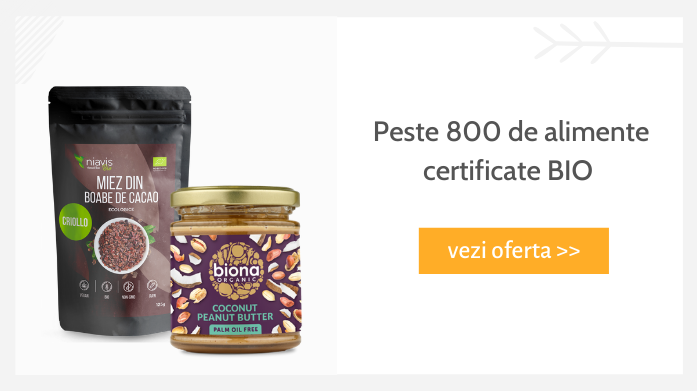 – 250g unt de arahide cremos. Alegerea noastră este Untul de arahide cu cocos de la Biona deoarece este un produs bio și vegan, fără grăsimi vegetale de palmier în compoziție;