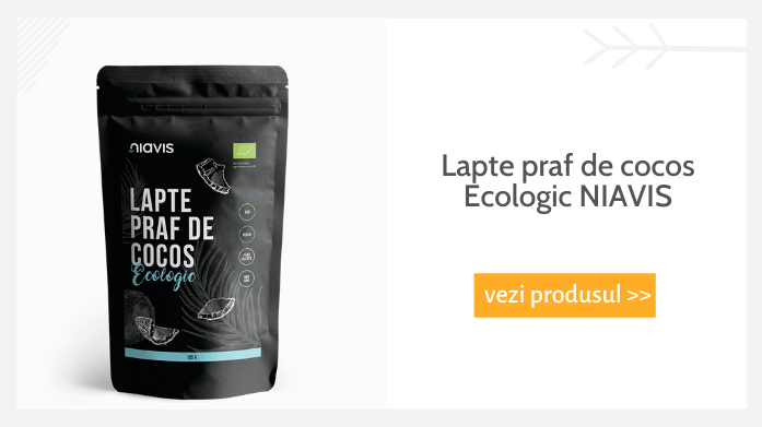 Dacă nu ai mai gătit până acum cu lapte praf de cocos dar ți-ar plăcea să încerci (chiar și una din cele 3 rețete prezentate), poți comanda oricând produsul de la Niavis de pe vegis.ro.