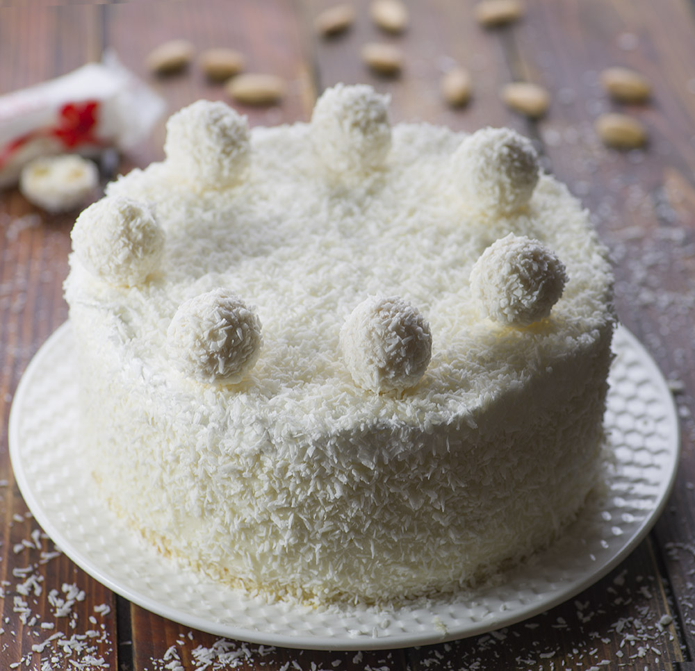 Prăjitura se poate acoperi în totalitate cu un strat gros de nucă de cocos răzuită, deshidratată sau se poate decora în alte nuanțe.